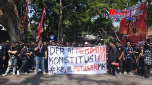 Roni, Korlap aksi mengatakan, “Saatnya rakyat bergerak mengawal demokrasi, jangan sampai demokrasi dicederai oleh kepentingan penguasa yang hanya mementingan diri sendiri tanpa memikirkan kepentingan rakyatnya.”