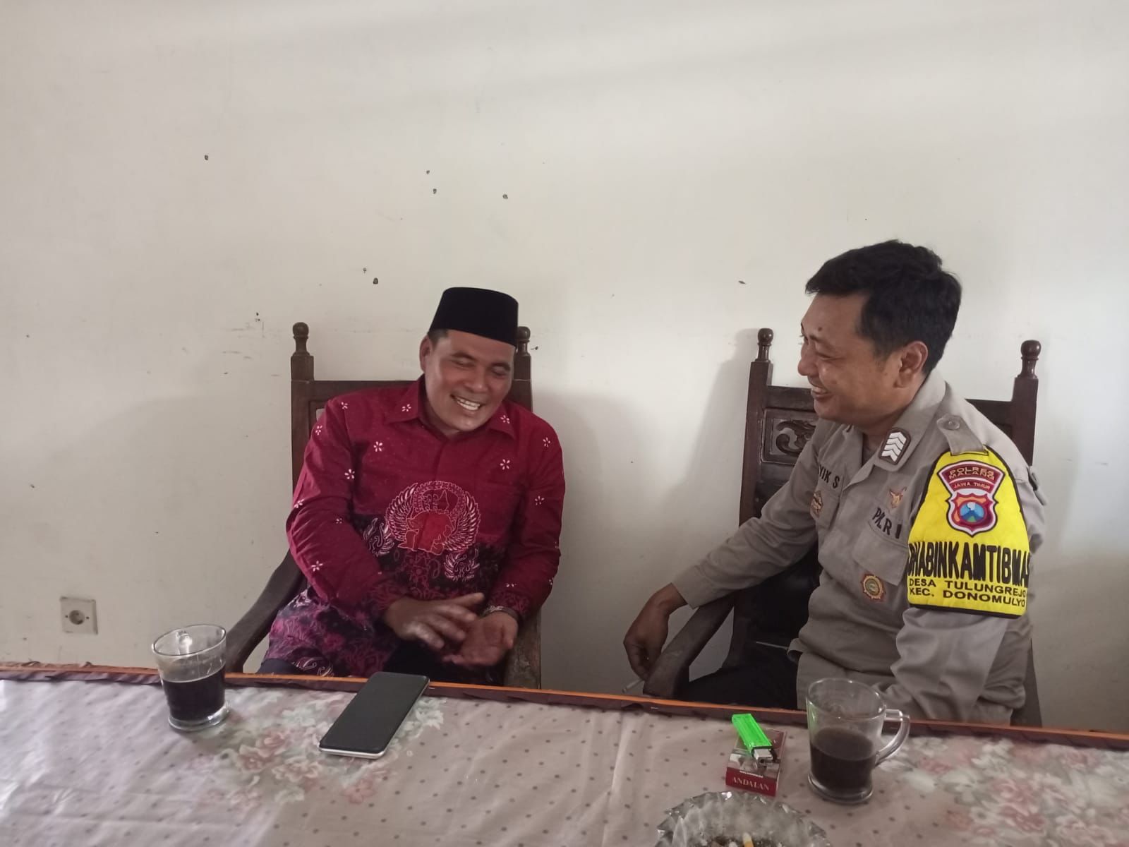 Kegiatan yang berlangsung penuh keakraban ini bertujuan untuk membangun komunikasi yang baik serta memperkuat sinergi antara kepolisian dan perangkat desa dalam menjaga keamanan dan ketertiban di lingkungan masyarakat.