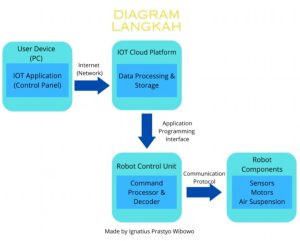 Robot ini menggunakan teknologi Internet of Things (IoT) yang memungkinkan kita mengendalikan robot dari jarak jauh melalui sinyal internet,seperti yang akan dijelaskan berikut ini: