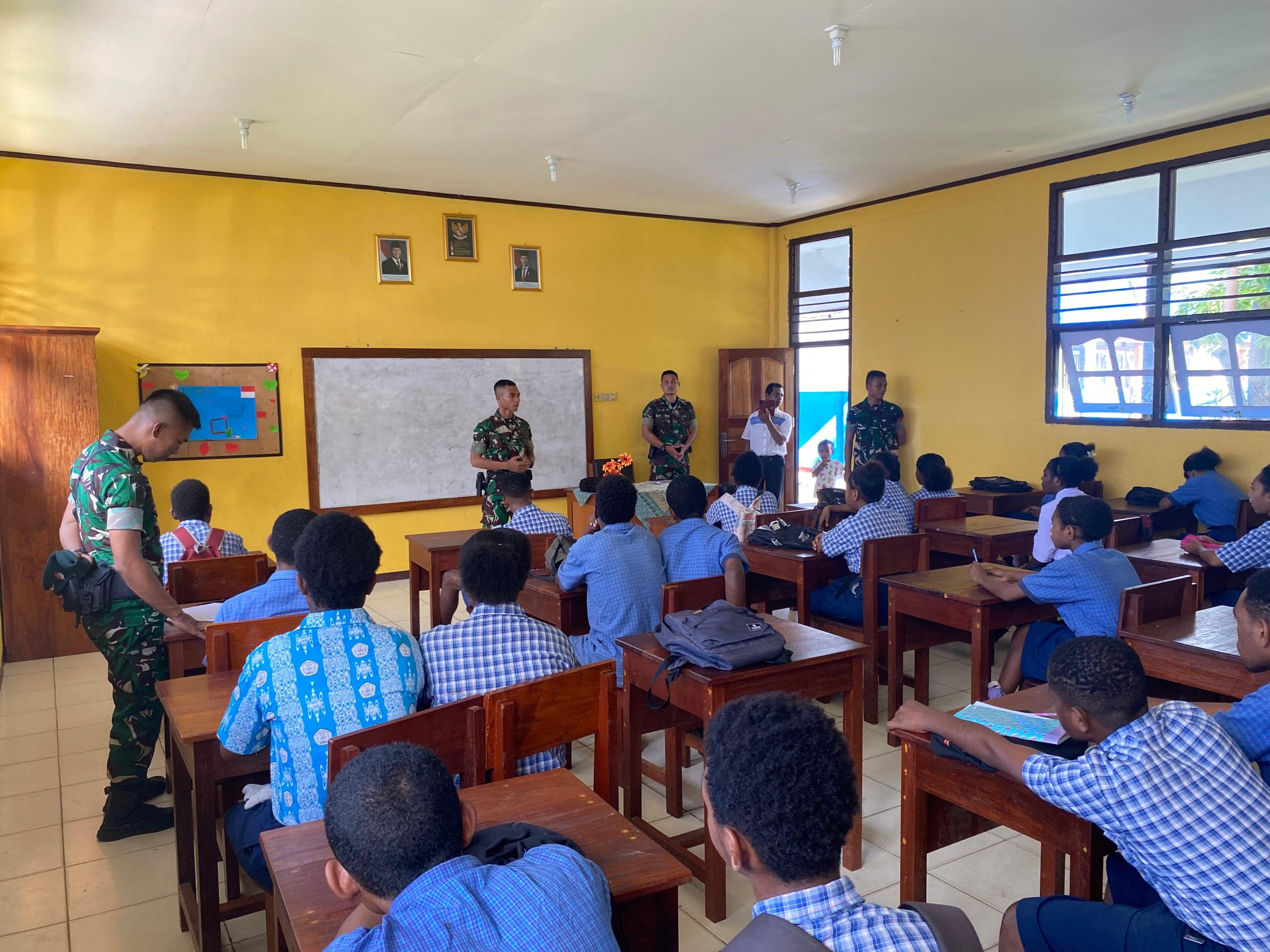 Sentani, Jayapura, Update News99 – Batalyon Infanteri 751/VJS pada hari ini melaksanakan kegiatan pembinaan teritorial (Binter) dalam rangka meningkatkan jiwa nasionalisme siswa SMP YKP Martin Luther, Distrik Sentani, Jayapura. (Rabu, 12/02/2025)