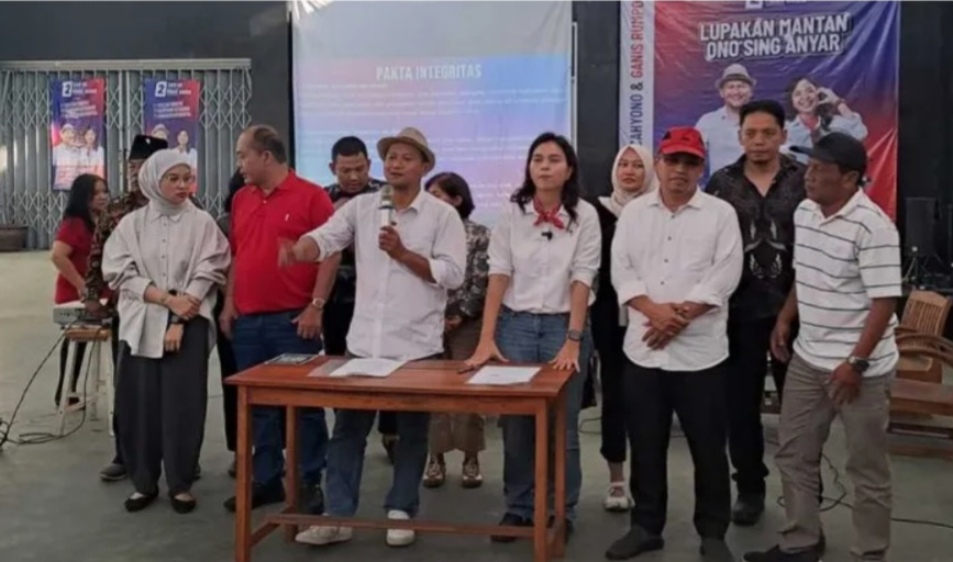 Penandatanganan Pakta Integritas anti Korupsi dan 9 Program Sing Anyar oleh Paslon Walikota dan Wakil Walikota Malang nomor urut 2, Heri Cahyono dan Ganis Rumpoko yang diselenggarakan dalam Ruang Gagasan Sing Anyar yang berada di Maliki Plaza, Jl. Sunan Kalijaga, Lowokwaru, Jum’at (11/102024).