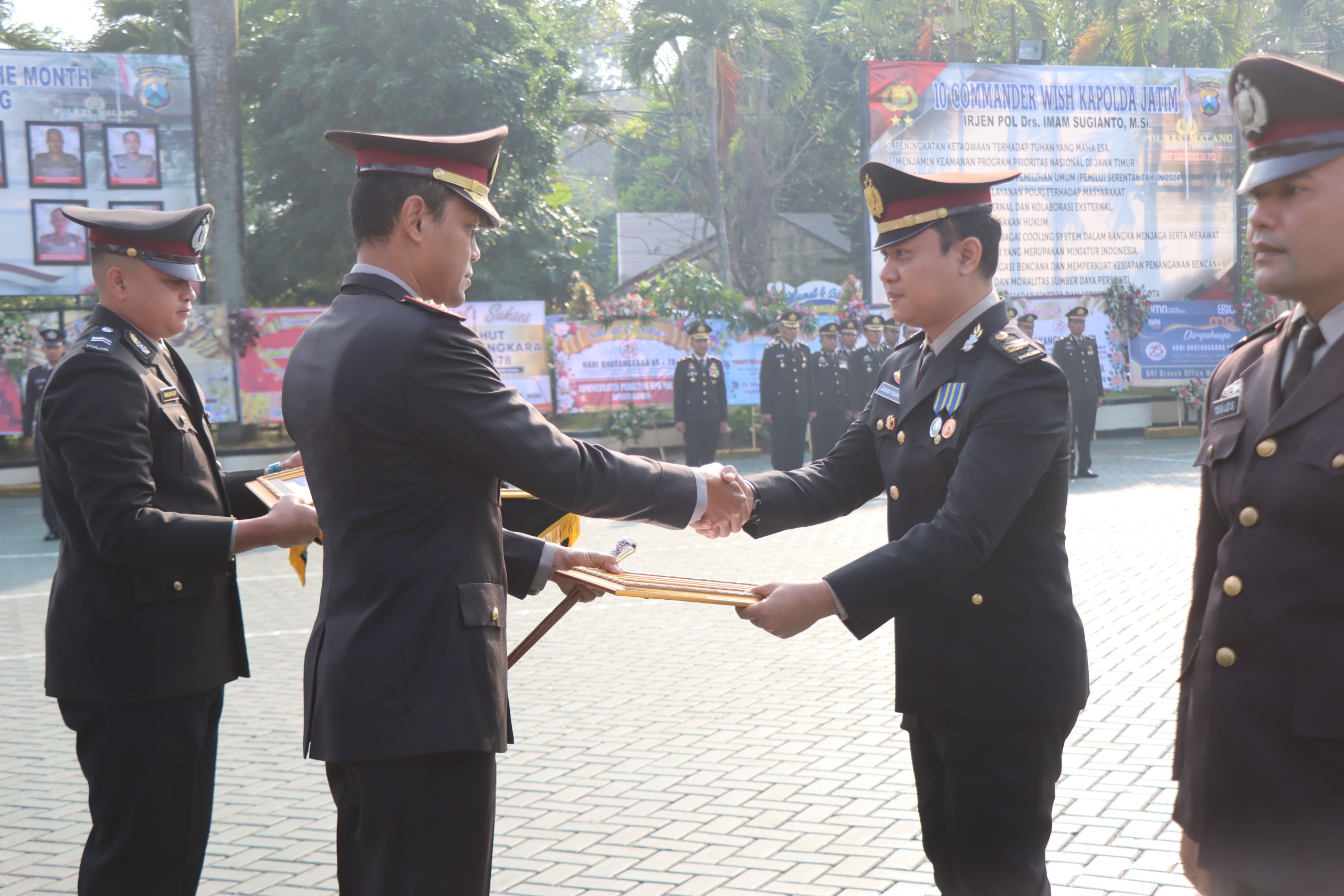 MALANG, UPDATE NEWS99 – Kepolisian Resor (Polres) Malang, Polda Jawa Timur, memberikan penghargaan kepada personel Polres Malang dan Polsek jajaran yang berprestasi dalam pelaksanaan tugas kepolisian. Penghargaan ini diberikan langsung oleh Kapolres Malang, AKBP Putu Kholis Aryana, saat pelaksanaan Upacara Peringatan Hari Bhayangkara ke-78 di halaman Polres Malang, Senin (1/7/2024).