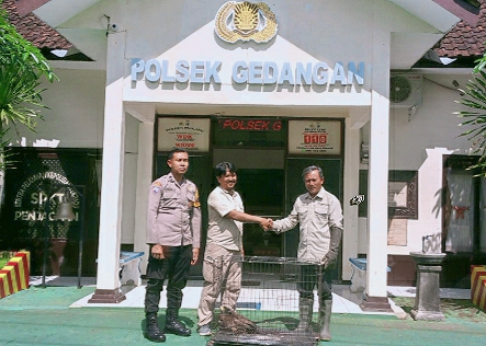 Penyerahan dilakukan secara resmi di Mapolsek Gedangan dan diterima oleh Agus Wanto, penyuluh konservasi dari BBKSDA Jatim.